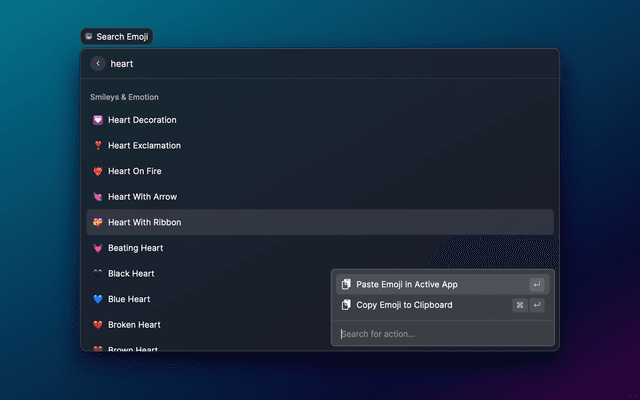 Finds emojis and inserts or copies them.
