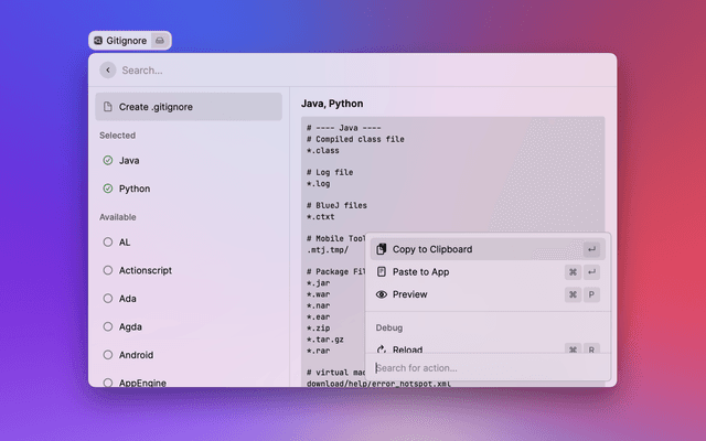 Raycast AIRaycast NotesRaycast FocusClipboard HistoryWindow ManagementSnippetsFile SearchQuicklinksCalculatorCalendarSystemEmoji Picker