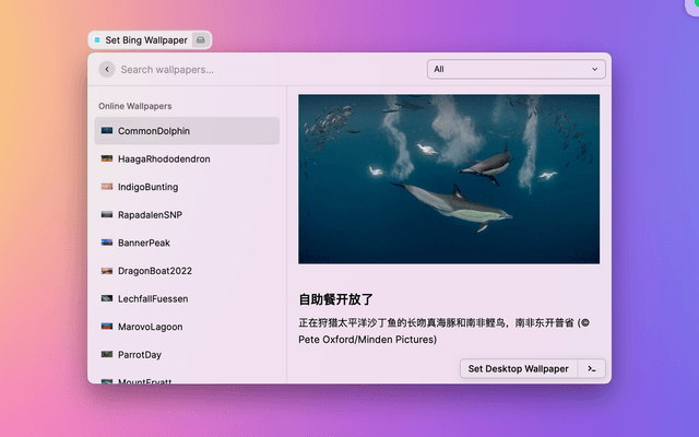 - You can choose the folder where you want to save your Bing wallpapers in Download Directory Preferences, and when you check Auto Download Wallpapers, the latest wallpapers will be saved automatically every time you enter the Set Bing Wallpaper command.