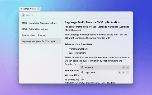 Pinned Notes