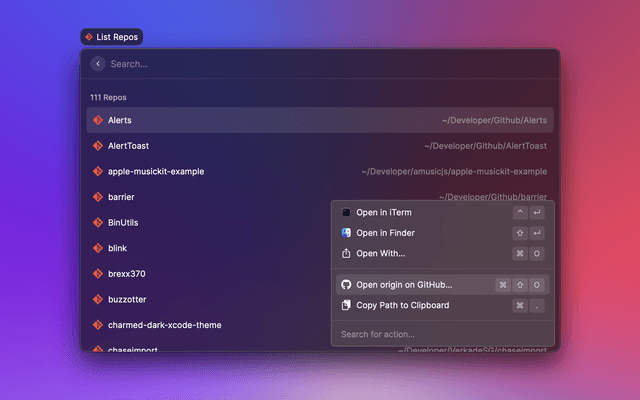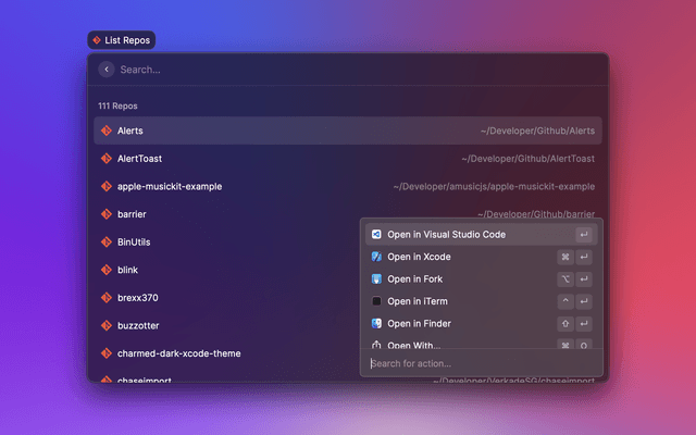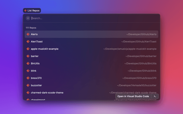 Search and open recent projects from Visual Studio Code.