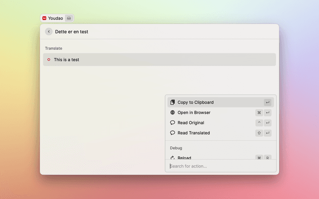 But compared with Alfred Youdao PowerPack workflow, the Raycast existing Youdao extension has more steps to execute to get translated content which is form based.